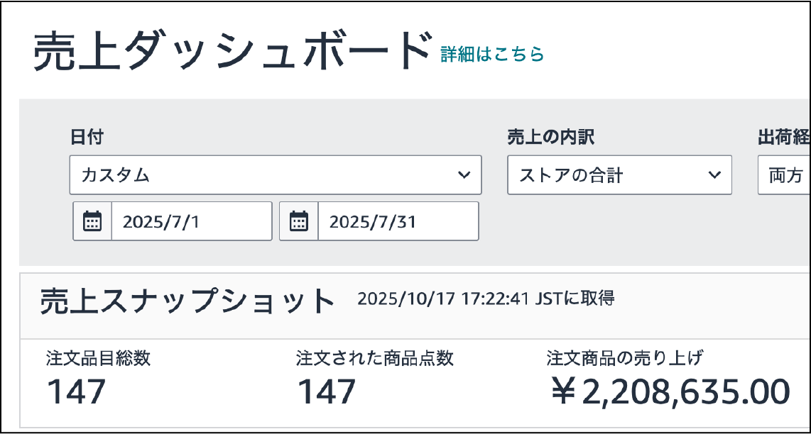※2025年7月の実際の売上